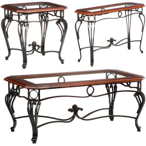 Aberdeen 3 Piece Coffee Sofa Amp End Table Value Bundle Dark Cherry Metal Amp Glass Walmart Com